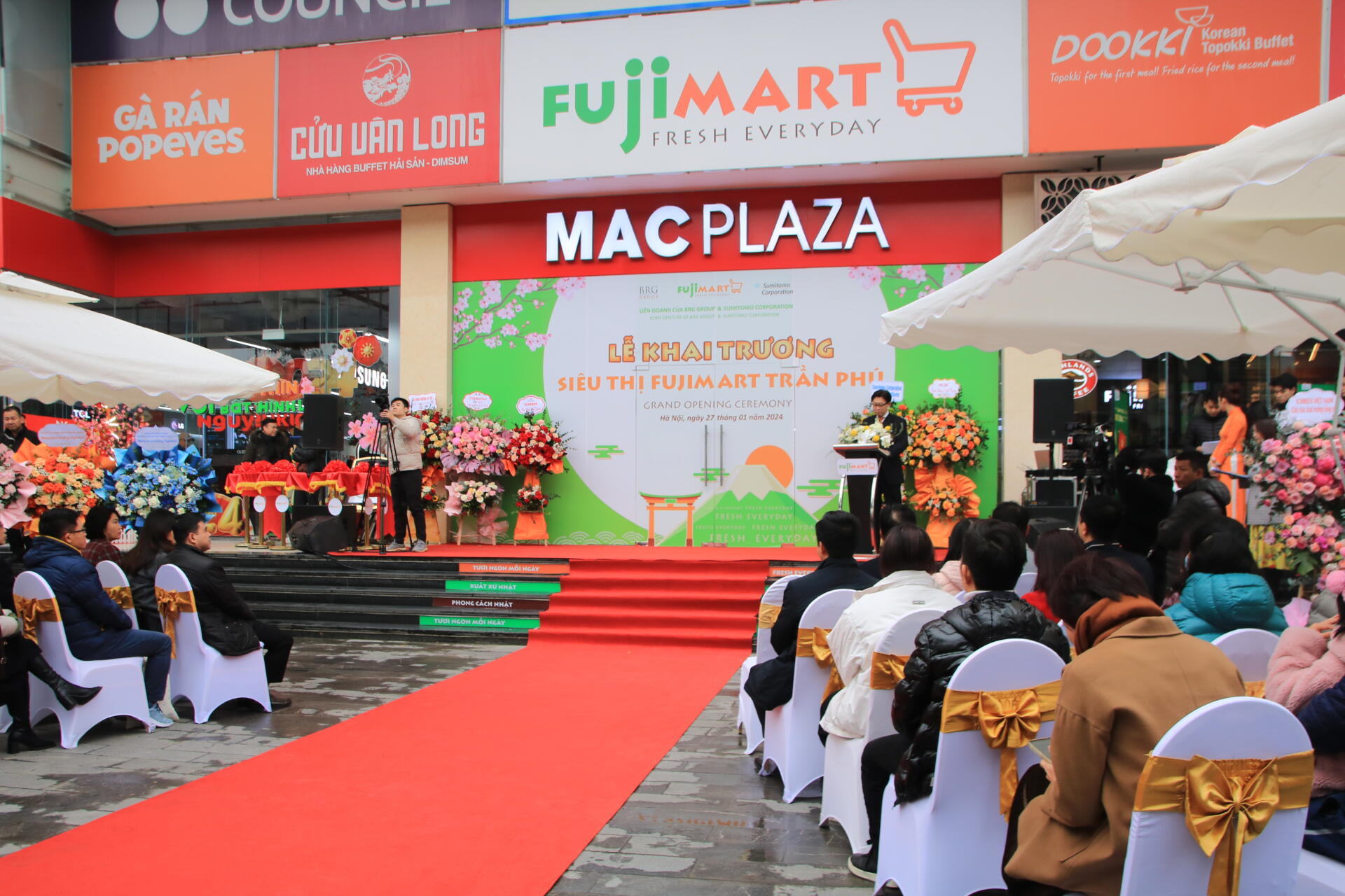 Tại Hà Nội, ngày 27/01/2024, Công ty TNHH Bán lẻ FujiMart Việt Nam - đơn vị liên doanh giữa Tập đoàn BRG (Việt Nam) và Sumitomo Corporation (Nhật Bản) - đã khai trương siêu thị FujiMart tiếp theo tại Tầng 1, Tổ hợp thương mại văn phòng cho thuê Machinco 1, số 10 Trần Phú, phường Hà Đông, thành phố Hà Nội.