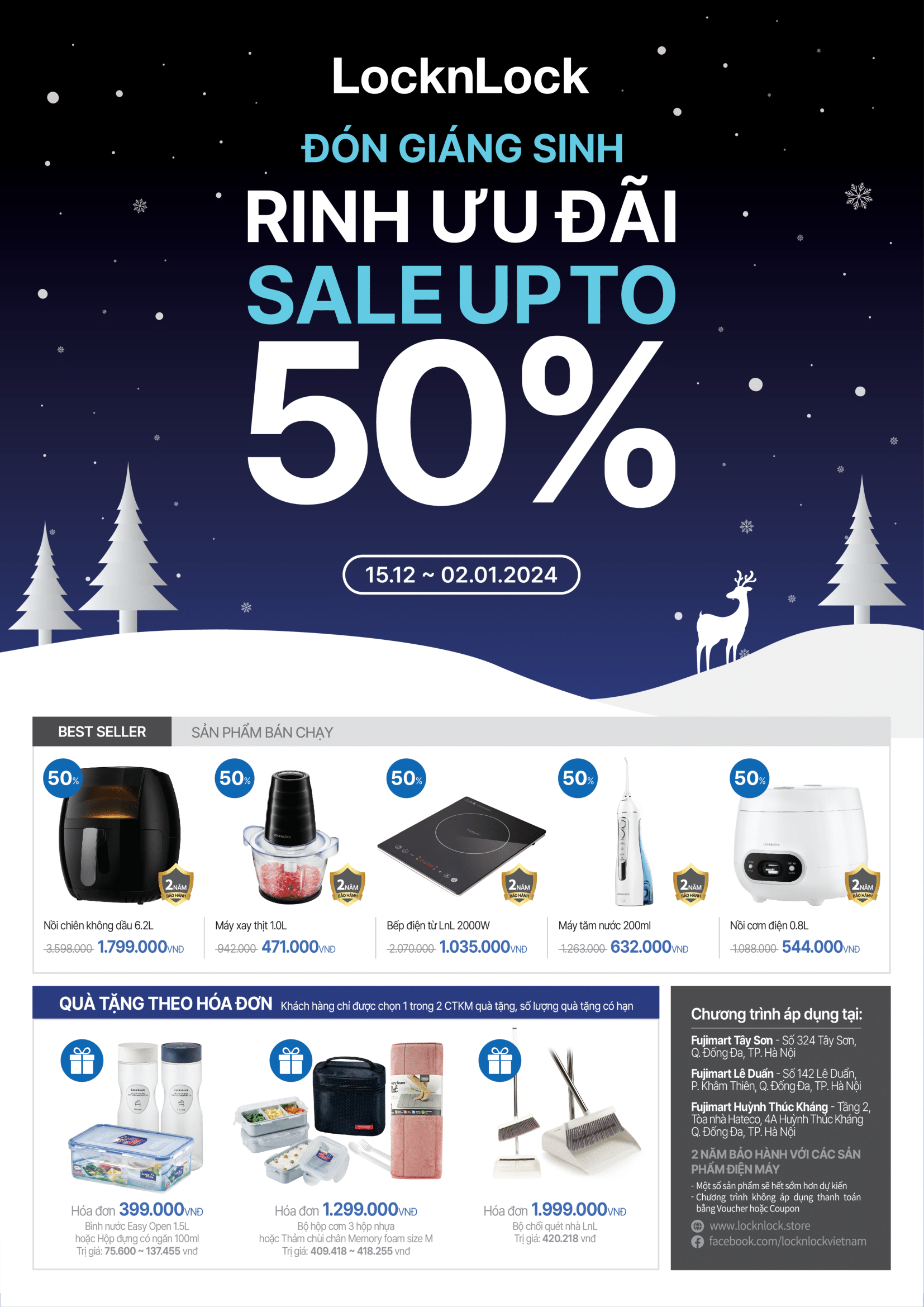 LocknLock x FujiMart: Đón Giáng Sinh, rinh ưu đãi Ngày đăng: 12/12/2023Chuyên mục Khuyến mại và Sự kiện, Khuyến mại và Sự kiện, Ưu đãi