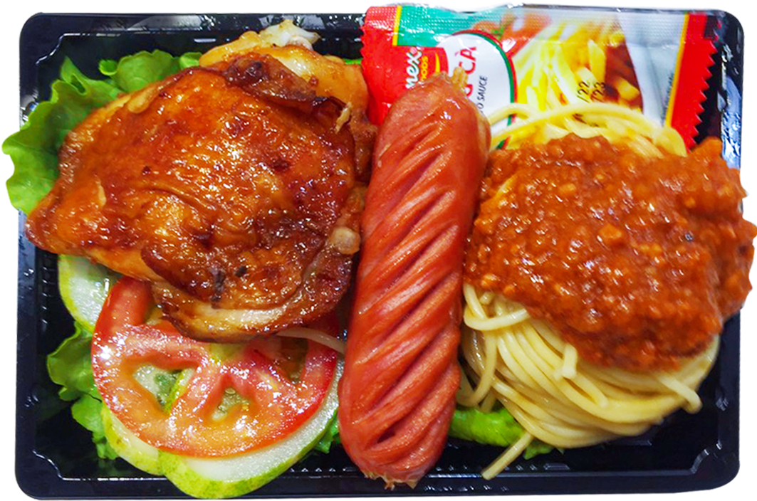 Combo mỳ Ý gà nướng và xúc xích