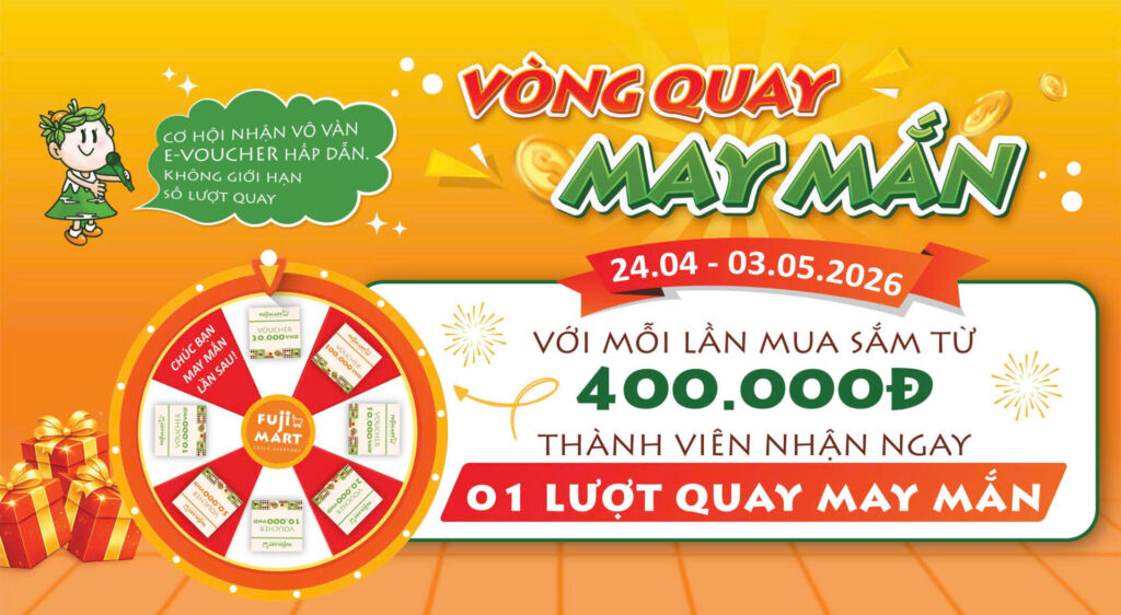 Từ ngày 24/4 đến ngày 3/5/2026, với mỗi lần mua sắm từ 400,000 đồng, khách hàng thành viên sẽ nhận ngay 01 lượt quay may mắn.